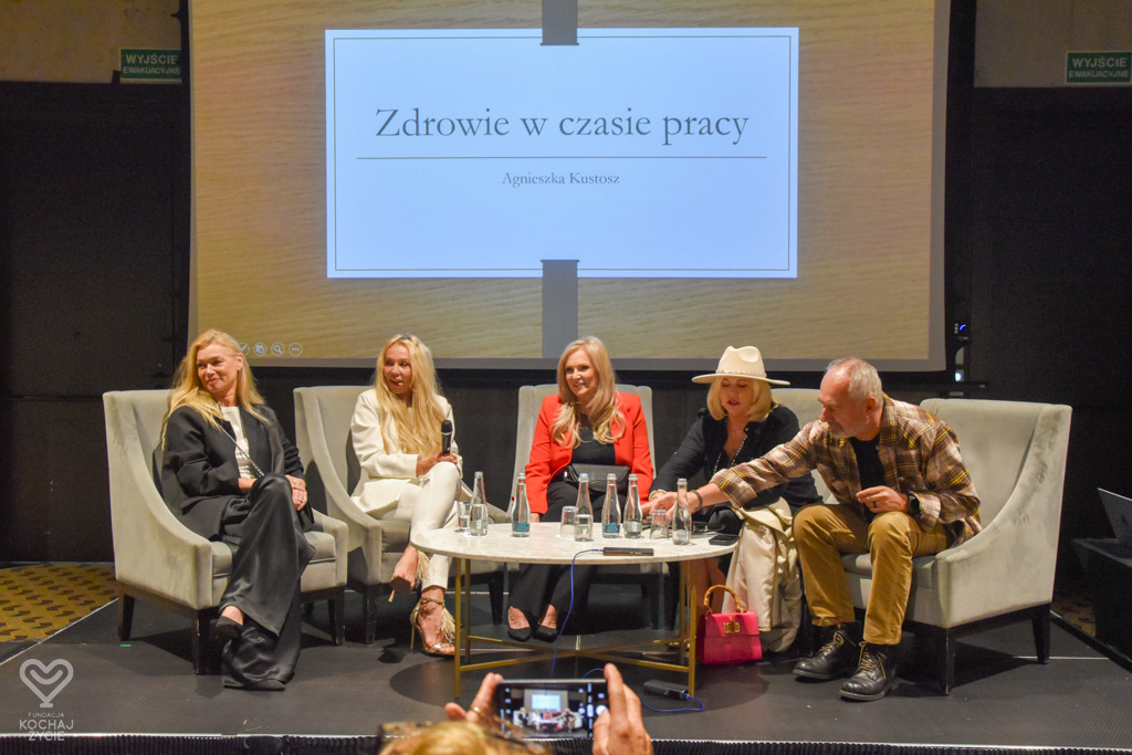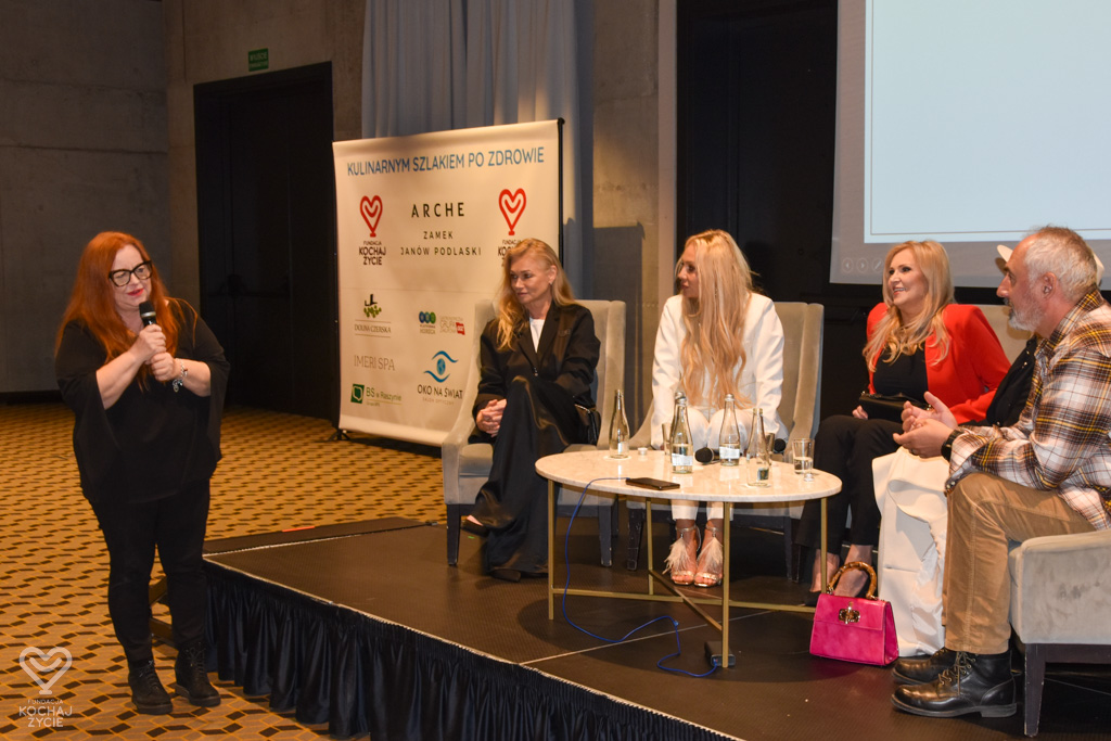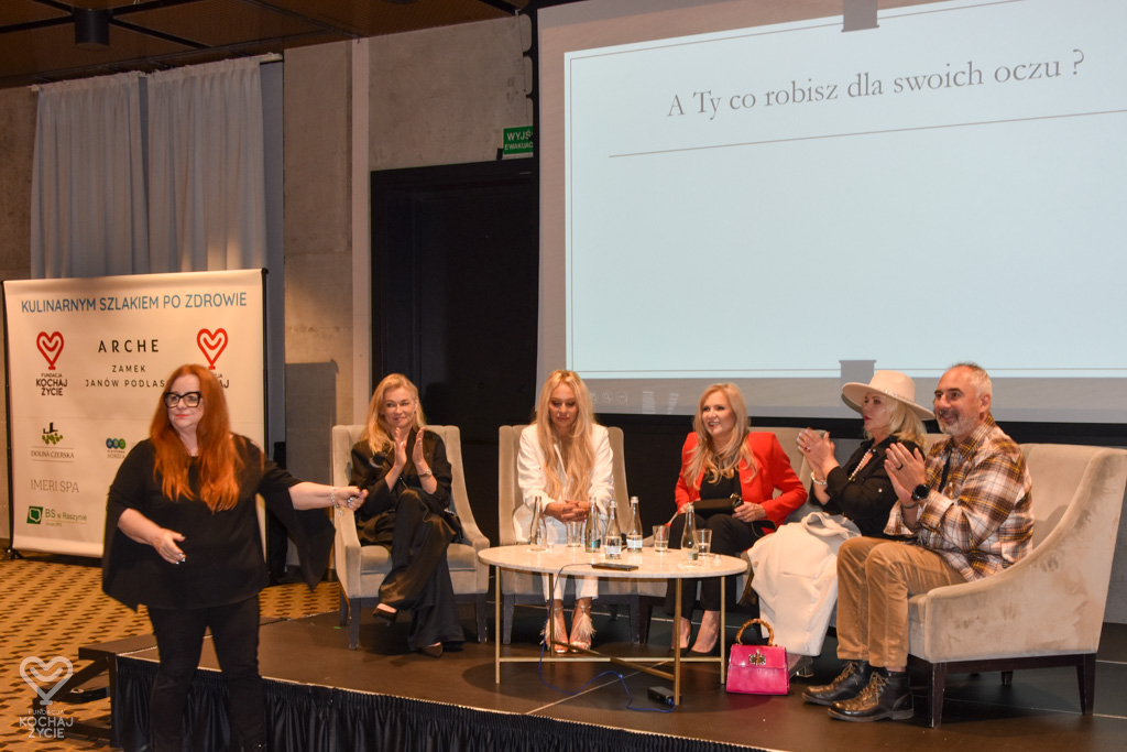 Wykład stał się punktem wyjścia do ożywionej dyskusji panelowej, w której udział wzięli zaproszeni artyści: Joanna Kurowska, Sylwia Wysocka, Monika Jarosińska, Jacek Kopczyński i Ewa Pacuła. Rozmowa szybko wykroczyła poza tematykę diety, kierując się w stronę bardziej złożonego, holistycznego rozumienia zdrowia. Uczestnicy zgodnie stwierdzili, że nie istnieje jedna uniwersalna dieta. Dzieląc się osobistymi doświadczeniami, omawiali skuteczność różnych modeli żywieniowych – od postu przerywanego po dietę ketogeniczną – dochodząc do wniosku, że kluczem jest indywidualne dopasowanie i wsłuchiwanie się w potrzeby własnego organizmu.